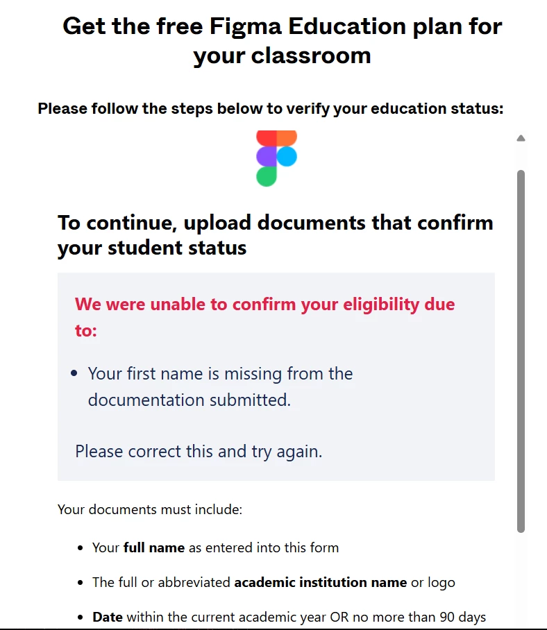 I tried to contact both Figma support and SheerID through mails but didn’t got response. Kindly assist with manual verification of my student status or, solution to fix this issue is much appreciated.