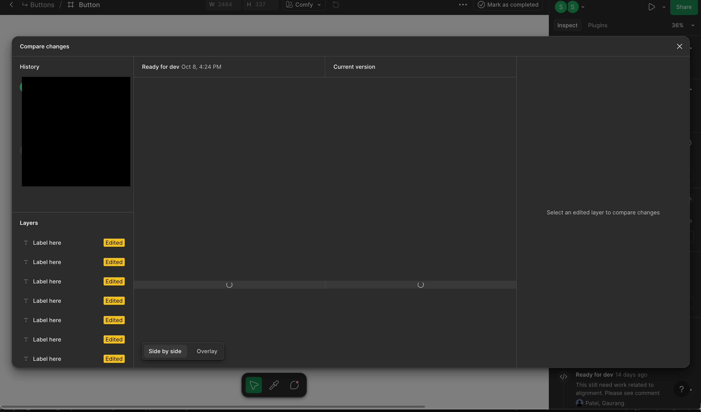 Compare Changes in Ready for Dev not loading content (works in Chrome) - just white wheels spinning (screenshot below)