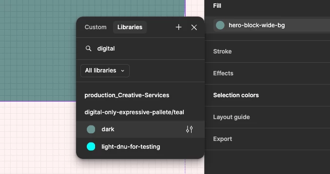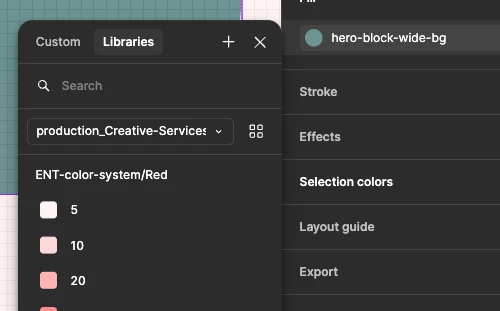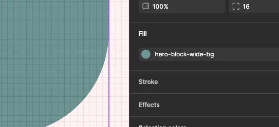 we’ll call the assets “hero-block-wide-bg” and the fill named “dark teal” is from the library.