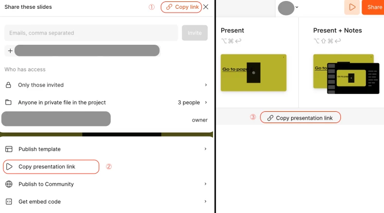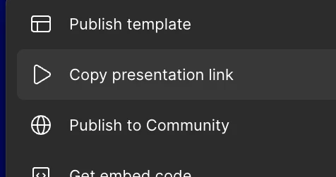 “Copy presentation link” from the modal opened via the Present button (top-right corner) - Copy the presentation link