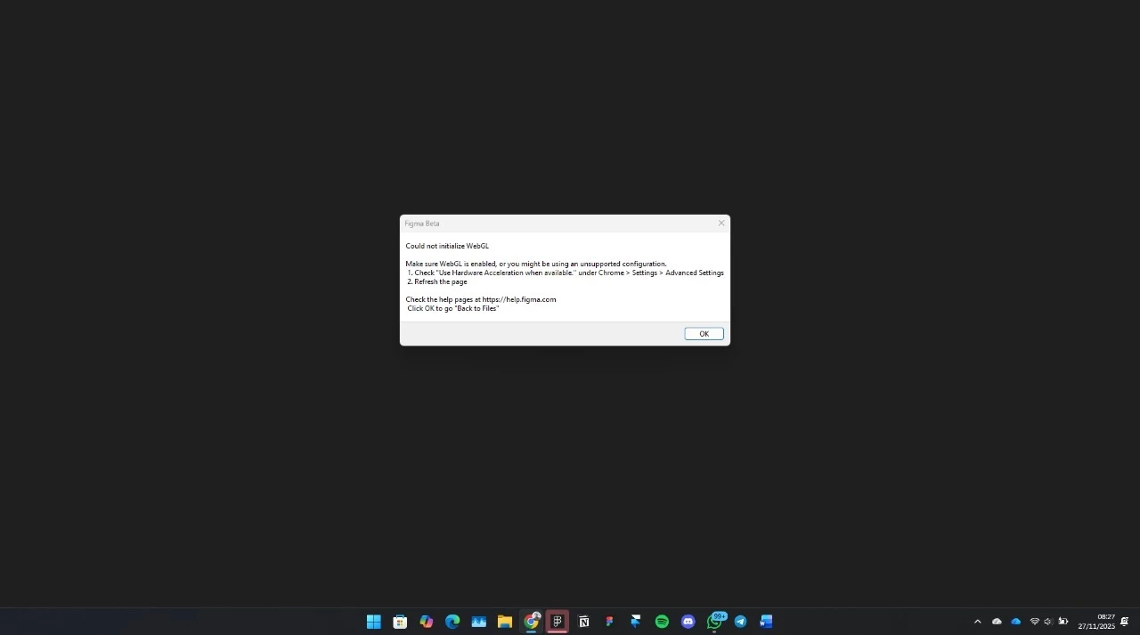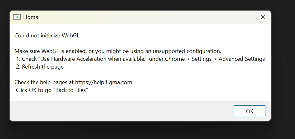 WebGL works perfectly when I use Figma in my browser (Chrome/Edge).