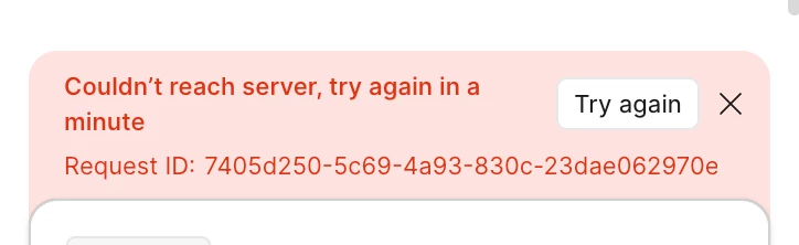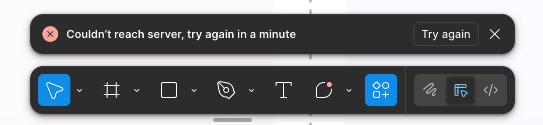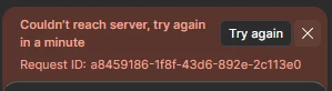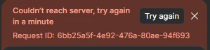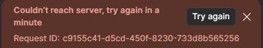 Hi, I’m facing the same issue while using Figma Make. I try to give prompt to the Figma Make and it thinks for some time and then eventually comes up with this error of ‘Couldn’t reach server, please try again in a minute’ with a request ID.