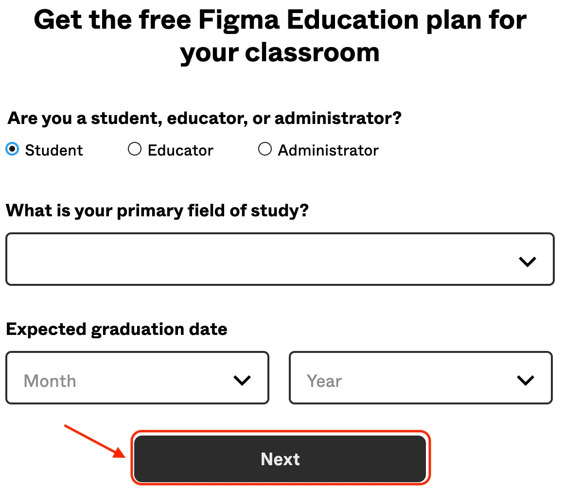 Visit the Education status application page: https://www.figma.com/education/apply.