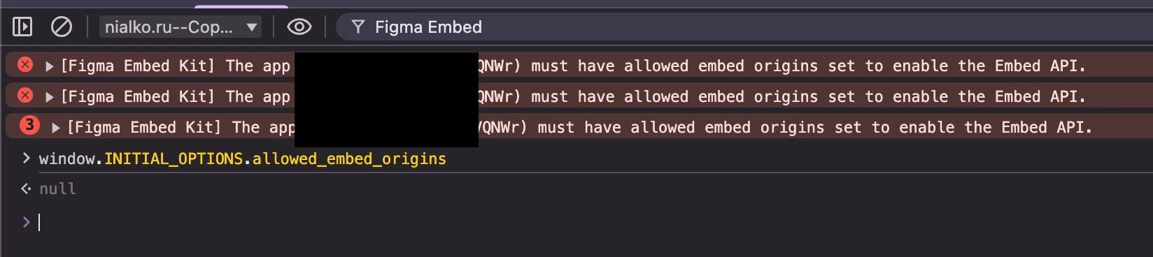 I’m currently trying to integrate the prototype to my site using Embed API. As it was requested in the instruction, I’ve created a new application, added allowed embedded origins and inserted iframe tag with prototype URL (including client-id field in order to enabled Embed API). However, it seems that my origin settings aren’t propagated to the iframe. Whenever I click to the prototype inside the iframe, my browser logs an error message into the console. From what I already discovered, allowed_embed_origins field always comes with null value, regardless of the settings I set. Please take a look
