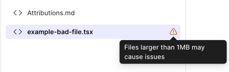 These will be marked with a warning icon next to the filename in the left sidebar of the Code editor: You can try shortening or deleting the problematic files.