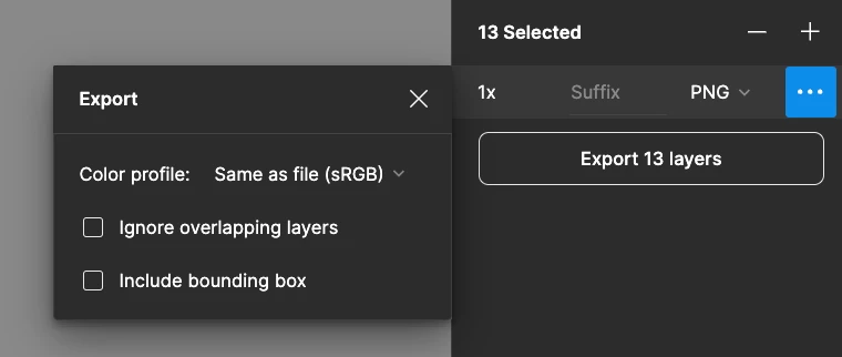 This setting is turned on by default when exporting as a PNG, which means only selected layers are included while overlapping elements might be excluded. The way you select frames could impact what gets exported, depending on whether this setting is enabled or disabled.