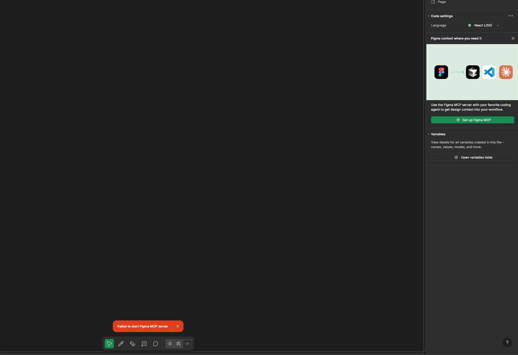 I just purchased the pro plan yesterday, and everything was working great. I login again today, and suddenly the Figma MCP server fails to start.