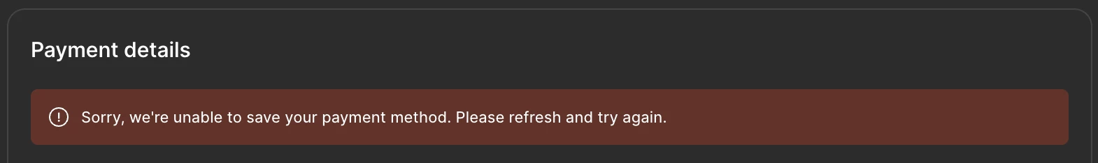 I've tried upgrading my figma plan to pro many times, but it always gives me an error message: "Sorry, we couldn't save your payment method."
