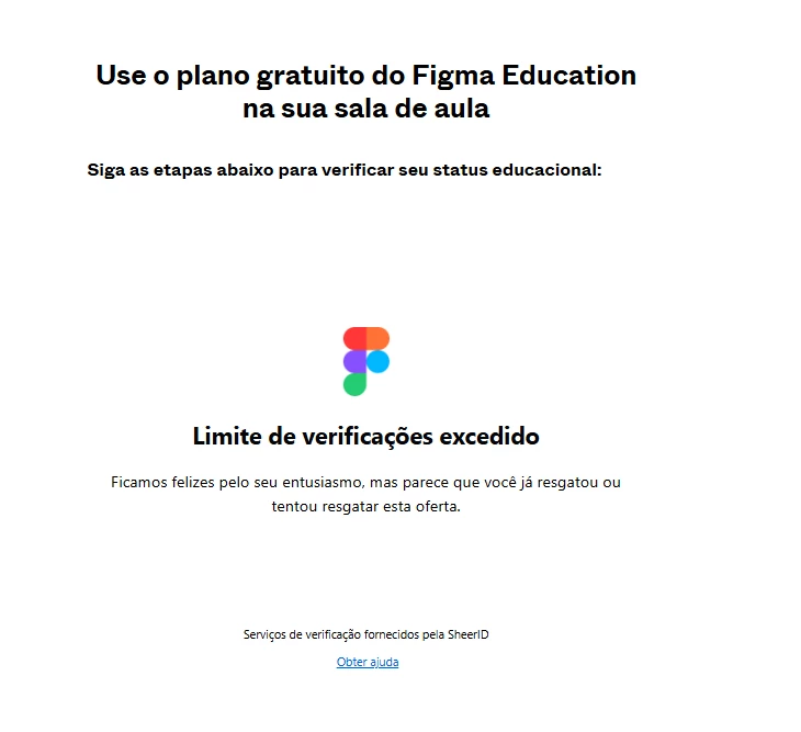 Estou com um problema. Sou devidamente matriculada no ensino superior, bacharelado em Sistemas de Informação, e tenho uma verificação de estudante feita com sucesso. Por meio dela, acessava as funcionalidades do Figma.