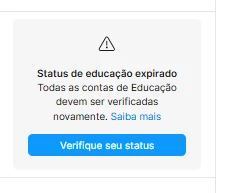 Porém, estou recebendo a mensagem de que o meu status de educação foi expirado: