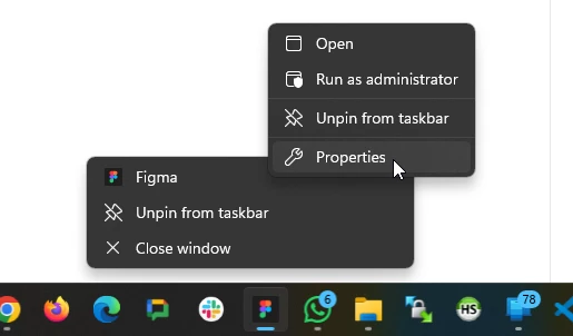 - Right-click on the shortcut (desktop/taskbar/start menu folder -- whichever you use)