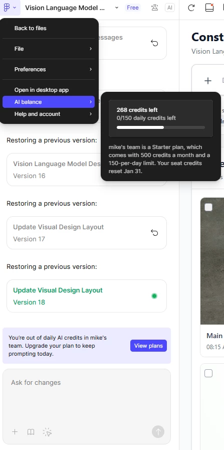 Podem por favor verificar e resetar/restaurar meus créditos diários ou corrigir o contador? Preciso muito usar o Figma Make hoje para finalizar um projeto.