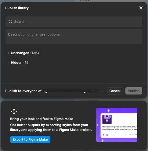 EDIT: Now I saw it, below the publish dialog, there is another dialog with a button “Export to Figma Make” This is obviously yes, and I overlooked it completely, but doesn’t integrate well into the library publishing mechanism really. Plus it takes ages to export the lib again.