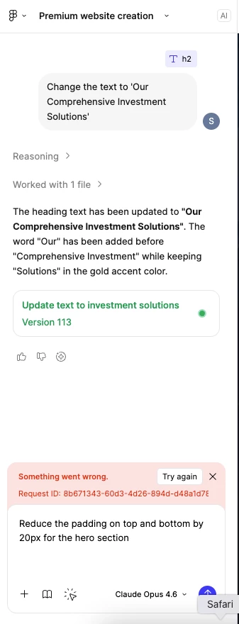 Figma make suddenly stopped working. Every time I try to give prompt, it shows error continuously showing ‘something went wrong’ in red showing some weird ID. I need to complete my task ASAP. I tried to reach the Figma support team by mailing at support, still no response!!