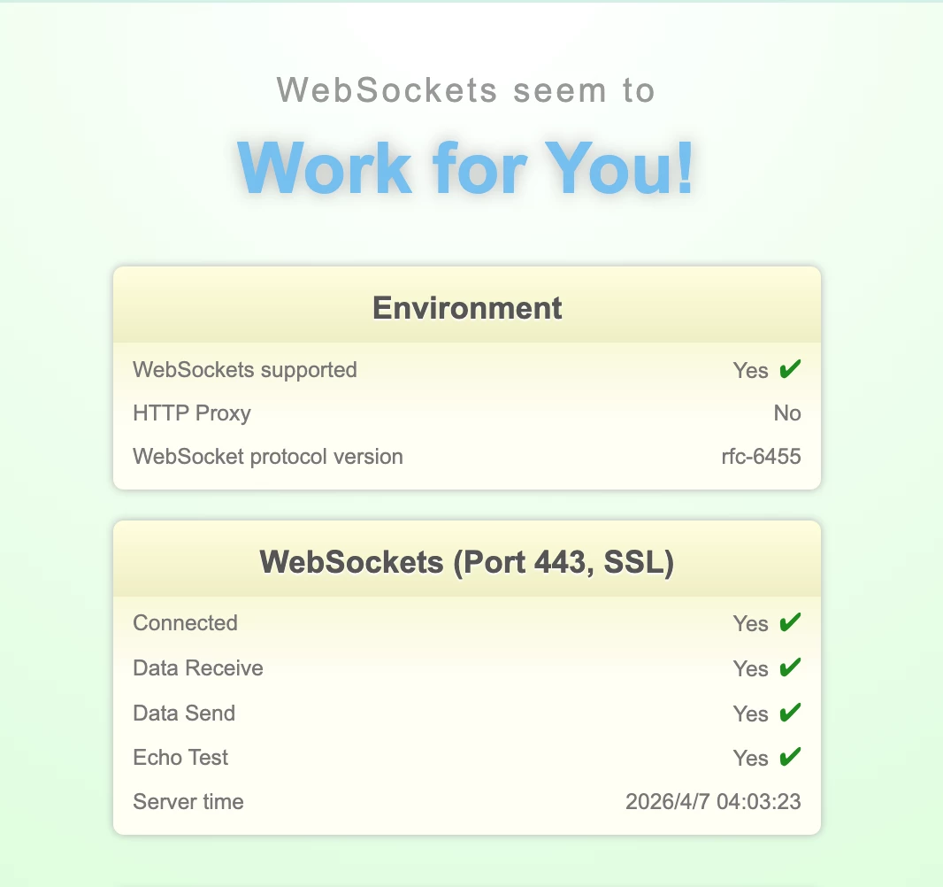 - Also, my websockets also work.