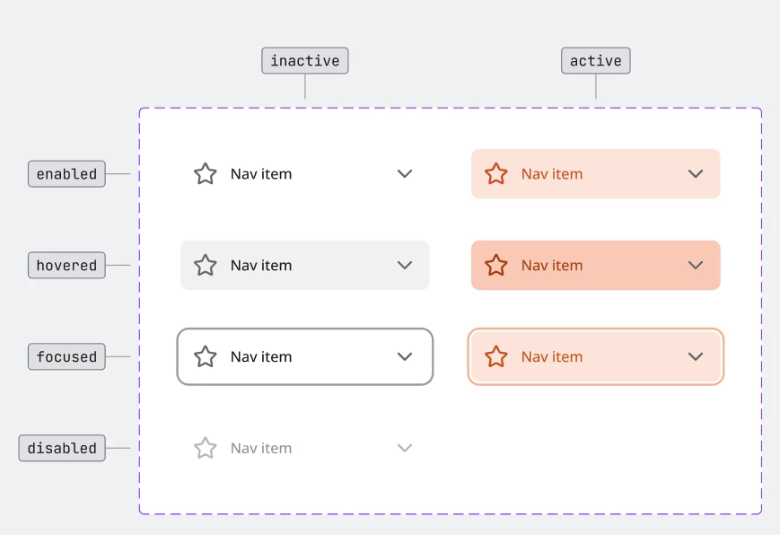 I am managing a design system to use with Figma Sites. I built this side navigation component: