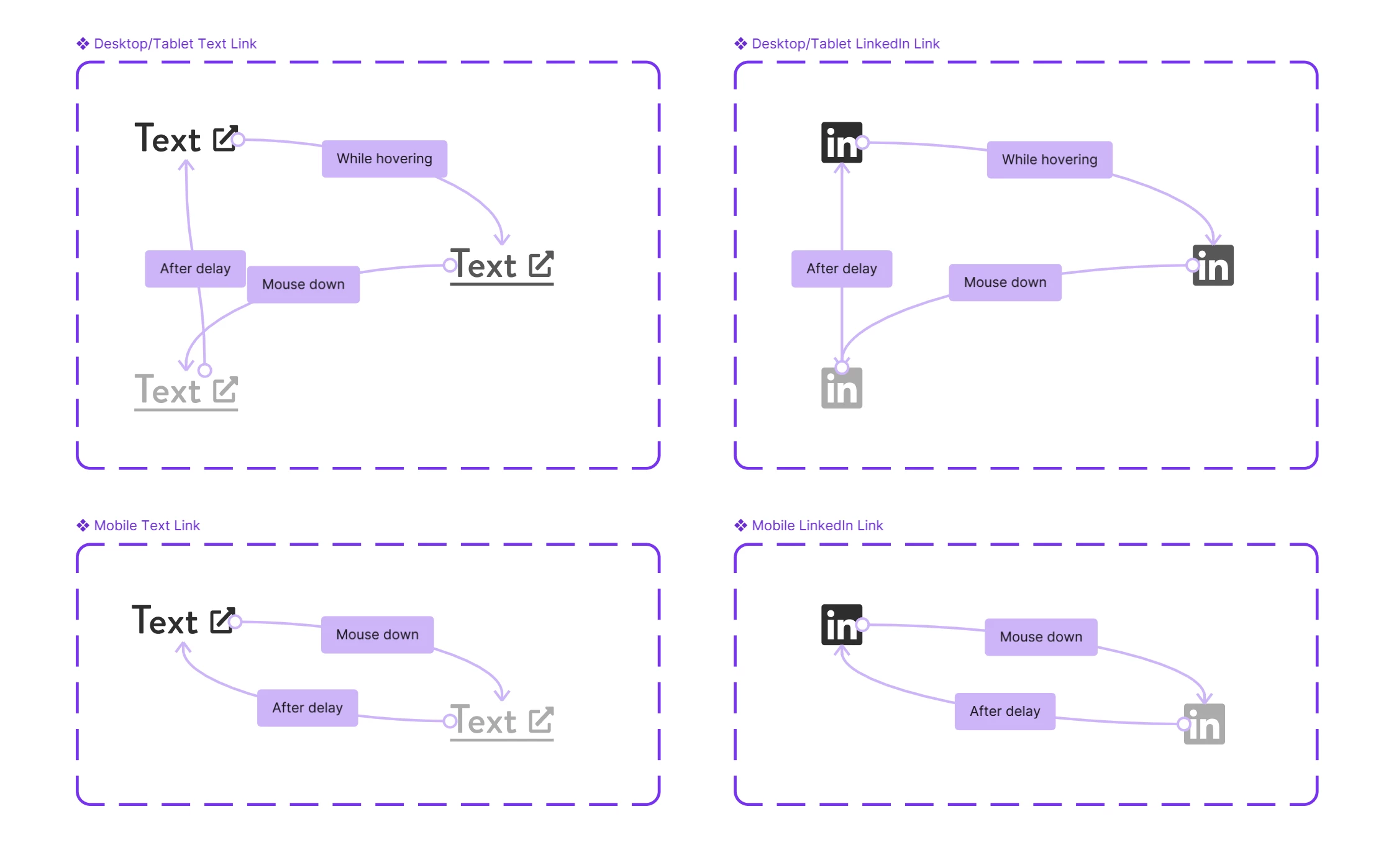In the Design preview, all 4 components’ variant and standard interactions work as expected. Sites, however, presents some strange behavior. While the “Text Link” components work correctly, the “LinkedIn Link” components take multiple clicks for their On Click interactions to fire.