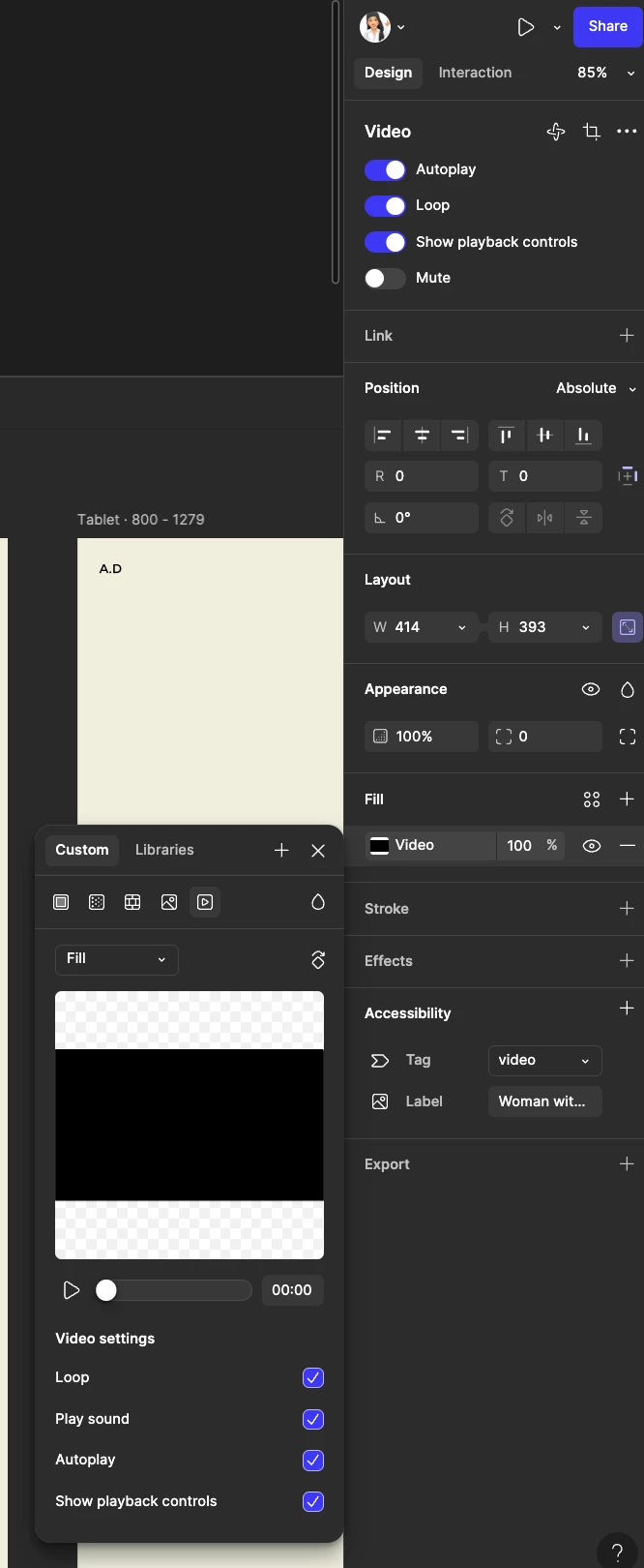 I recently noticed that Figma Sites now allows us to embed video directly into frames, as follow: