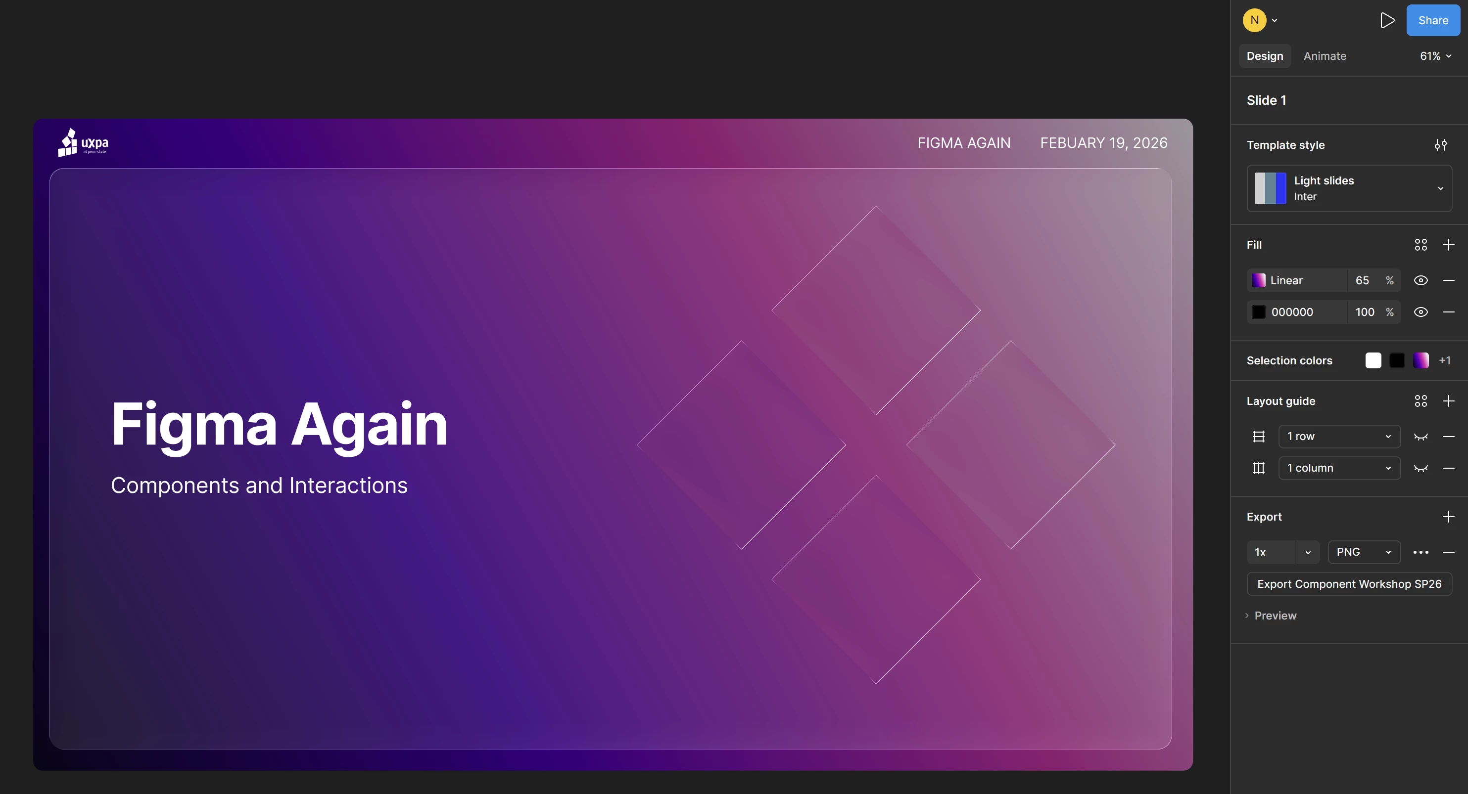 I have a frame with the Glass effect on top of a linear gradient making up the background of my first slide. This looks fine in the Slides file and regular presentation views, but appears differently when viewed from Presentation with Notes, as pictured. The file thumbnail is also off in a slightly different way, which never appears in any other circumstance. This issue seems to only affect the first slide of the presentation, despite all others containing the same properties.
