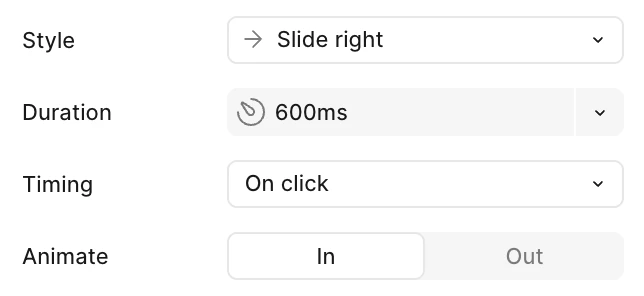 We are trying to simply animate a few text boxes and it turned out really cumbersome. The animation panel always resets to default instead of reusing the settings I just used for the previous layer (e.g. Fade, 150ms). Why would I ever want a piece of text to ‘Slide right’ at the slow pace of 600ms anyway…? 😅
