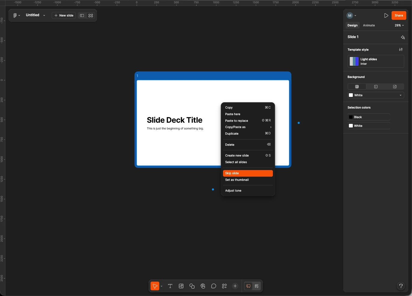 yes it happens also when i create a new slides from a new default template. Below is a step by step from a new figma slide → template → Skip Slide.Let me know if you need any more information to recreate the problem for your testing!