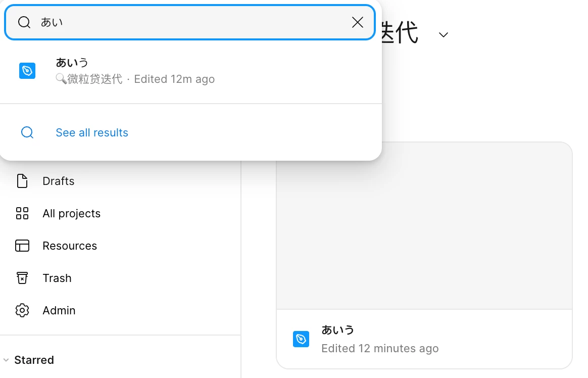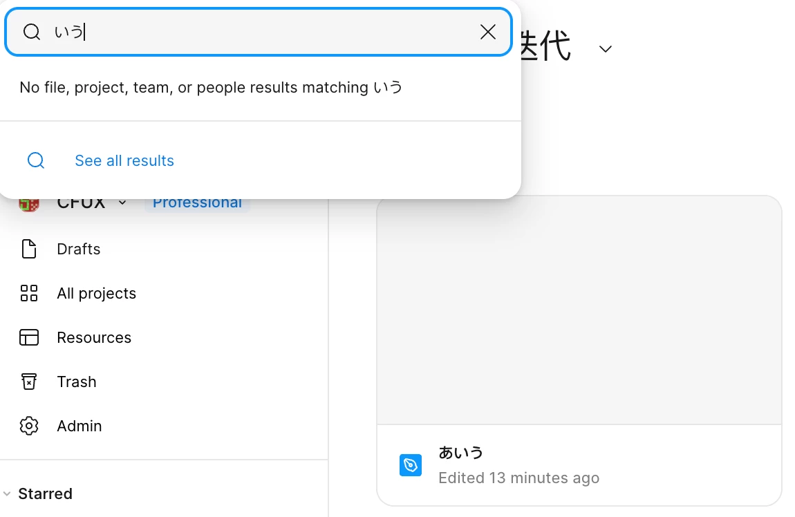 - ❌ Search “い”, “う”, or “いう” doesn’t, not even in “see all results” page.