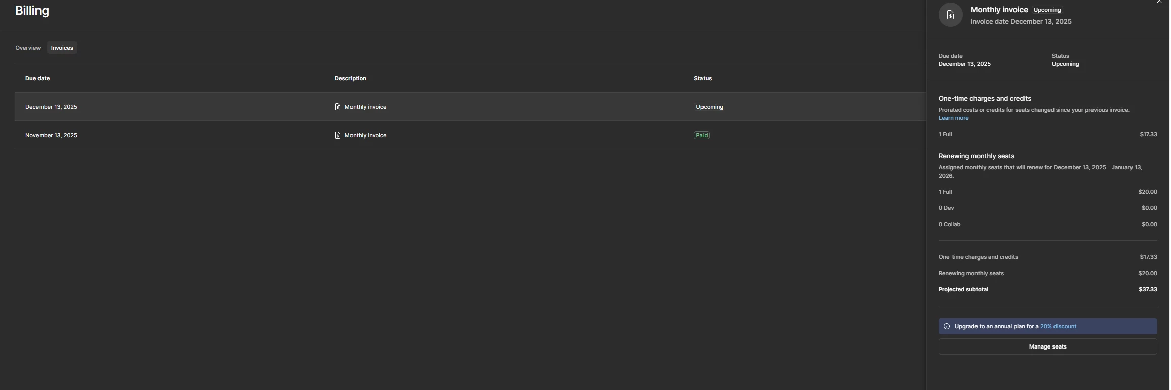 I only need 1 full site , and I set all member free on my team .but the bill shows that I need to pay for 2 full-seat. How can I delet the additional full-seat from the bill ? Could you connect me with the support team to cancel the seats ?