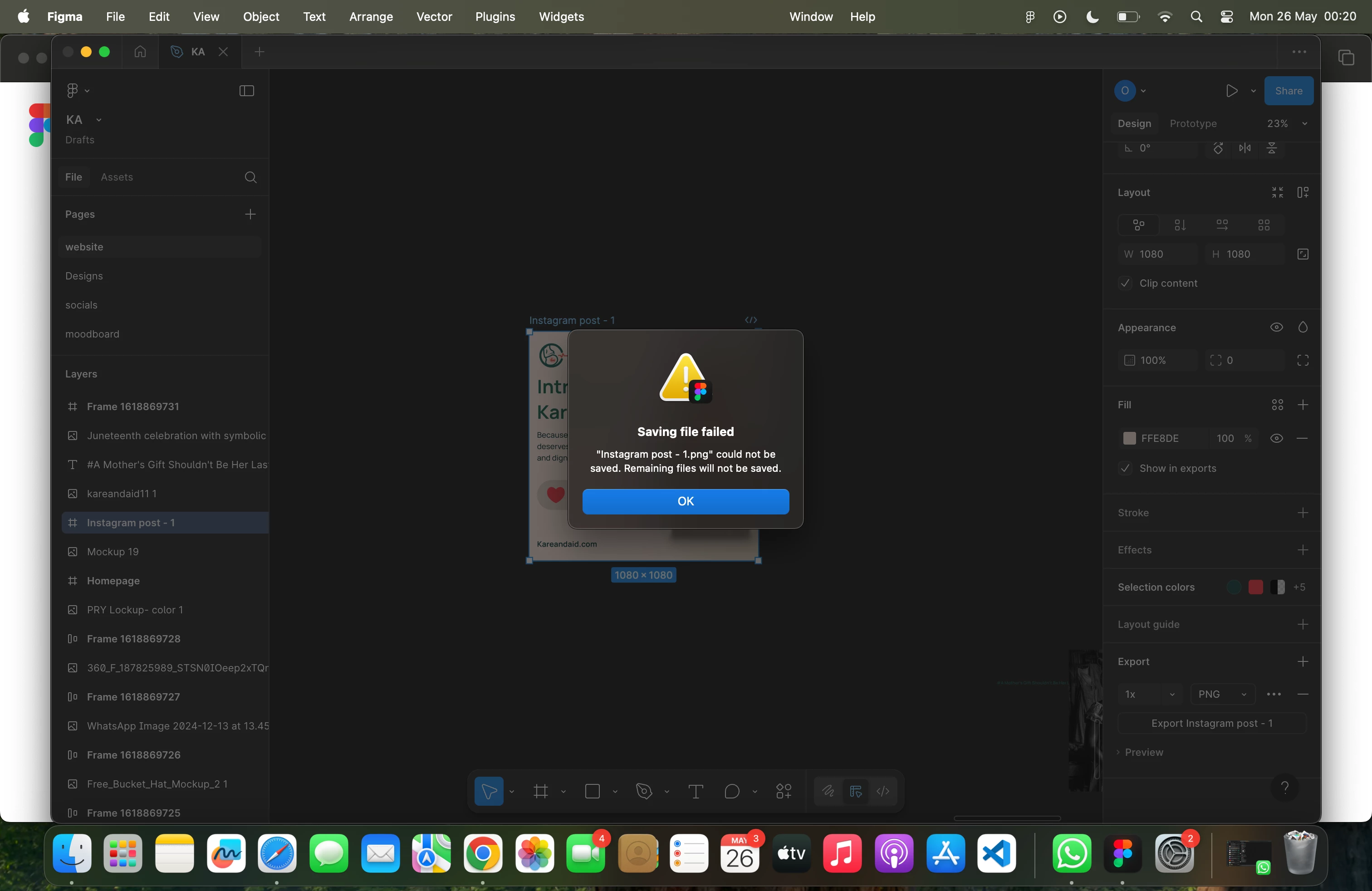 i tried exporting as png and it shows files could not be saved. remaining files would not be saved. i could do it earlier yesterday, but later and till now i cant export any frame. it’s really exhausting. Any idea on what i can do?