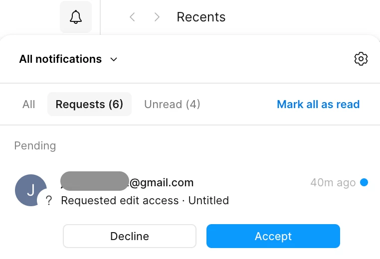 Hi - I am also having this issue. I am using Figma in the browser. Previously, requests used to show the full email addres, but no it only shows the persons name. This is a client file, so I need to validate the email domain in order to decide whether or not to grant access. It only seems to have changed recently and is delaying us providing client access.