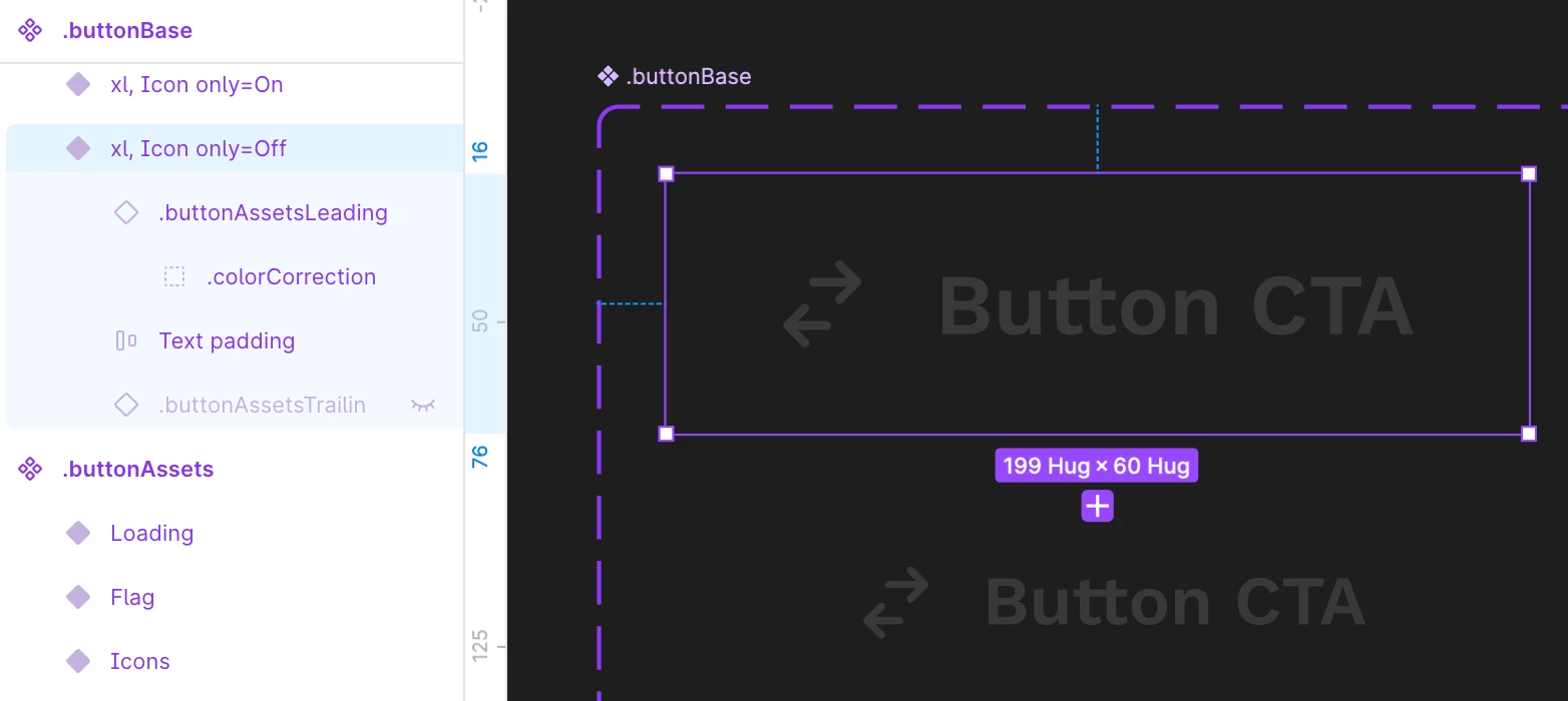 Then I used this large variant to create a new component called ‘Button’ which comprises of all the different types (solid, outline, ghost etc) and states (default, hover, disabled etc.).