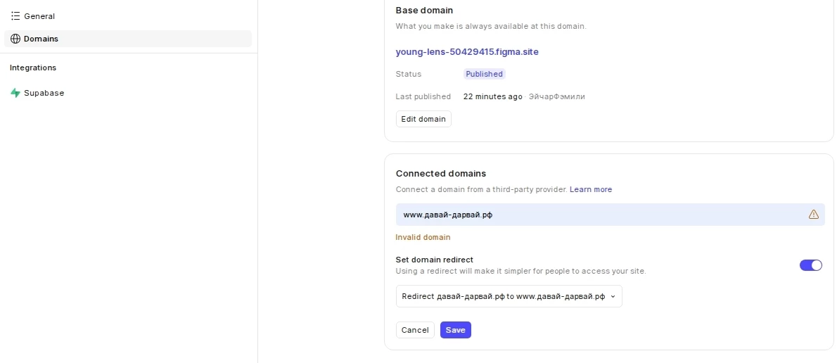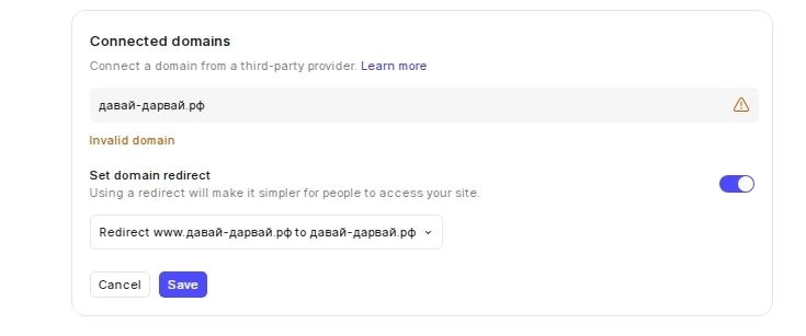 I can’t connect a domain from my provider. Error: Invalid domain.