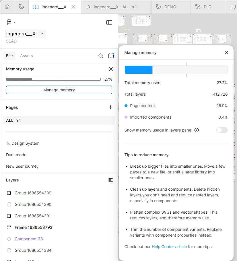 I’m experiencing unusually high loading times with one of our Figma files. The file’s actual content usage is only around 27%, yet it consistently takes a considerable amount of time to load across different systems—even on stable, high-speed internet connections.