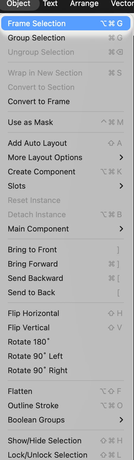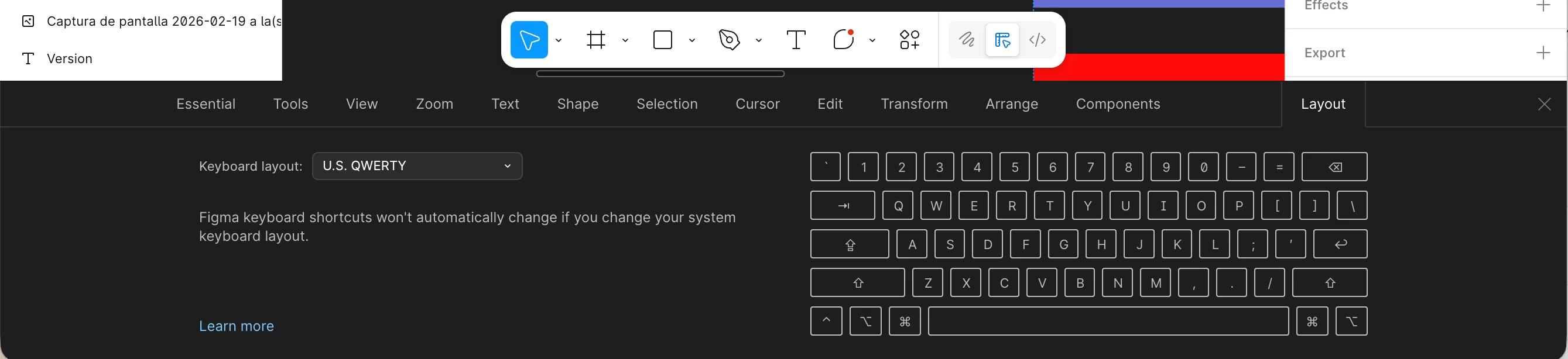 Here is my keyboard shortcuts layout on figma and on the mac.