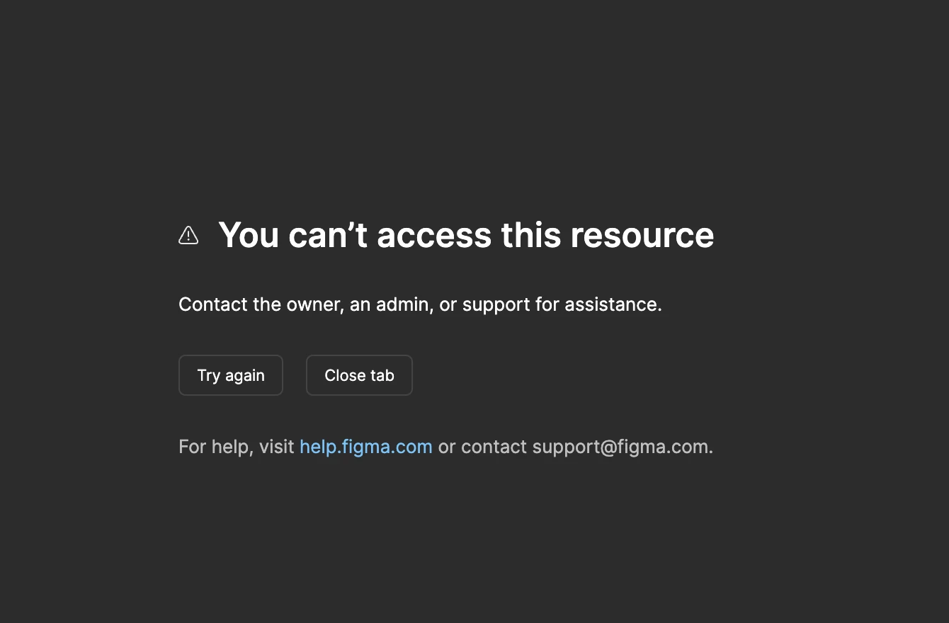 I encountered an issue while using Figma. I am unable to access a file that I originally created. The page currently shows the message “You can’t access this resource.”