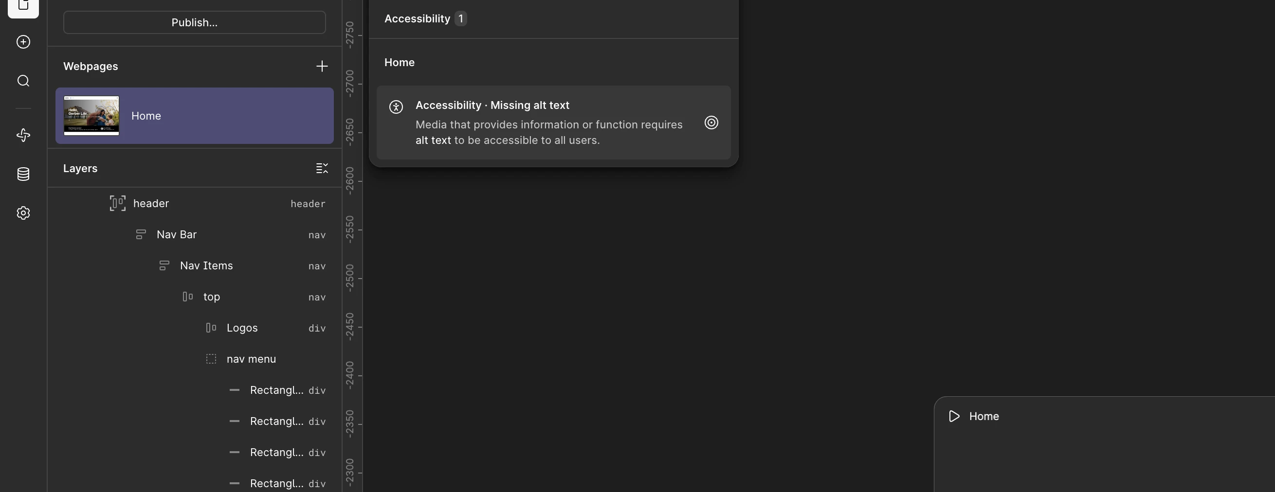 I’m working on a site and there’s a warning about an accessibility issue that we can’t solve. Other call outs lead to images without alt text or buttons set up incorrectly, but when we click on this one it highlights the entire Home page.