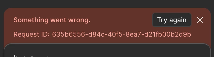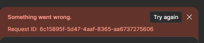 The file I am using with Figma Make is stuck, I keep getting this message: Something went wrong. (Try Again) Request ID: 5fa1baa9-f55a-4c79-8749-2e053f8b7f08. I’ve already: