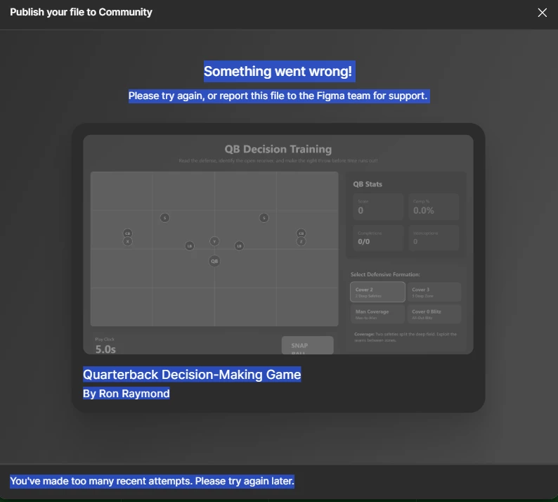 Everytime I try to publish my site, i get this error message; my url is showing a black blank screen at https://qbdt.figma.site/