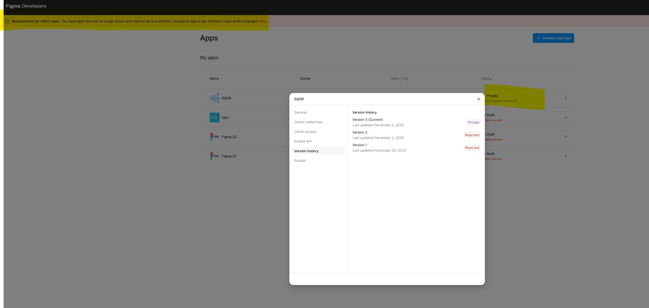 2. Even after i made the app private, why do i see "You have apps that are no longer active and need to be re-published." message on screen.