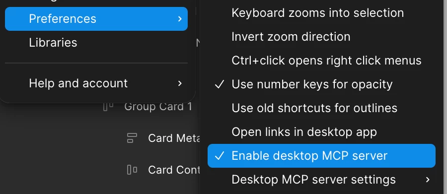 • Tools: create_design_system_rules, get_code, get_code_connect_map, get_metadata, get_screenshot, get_variable_defs