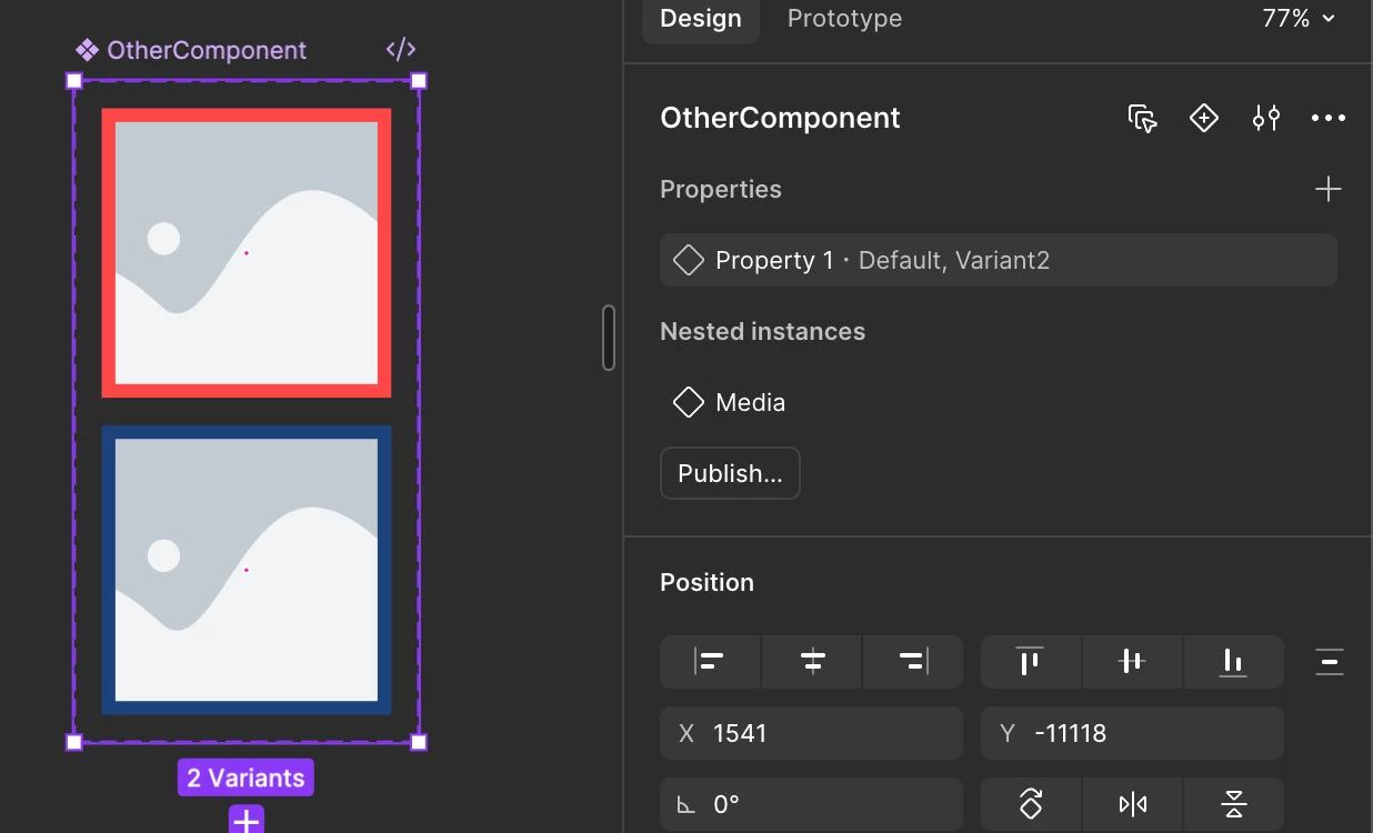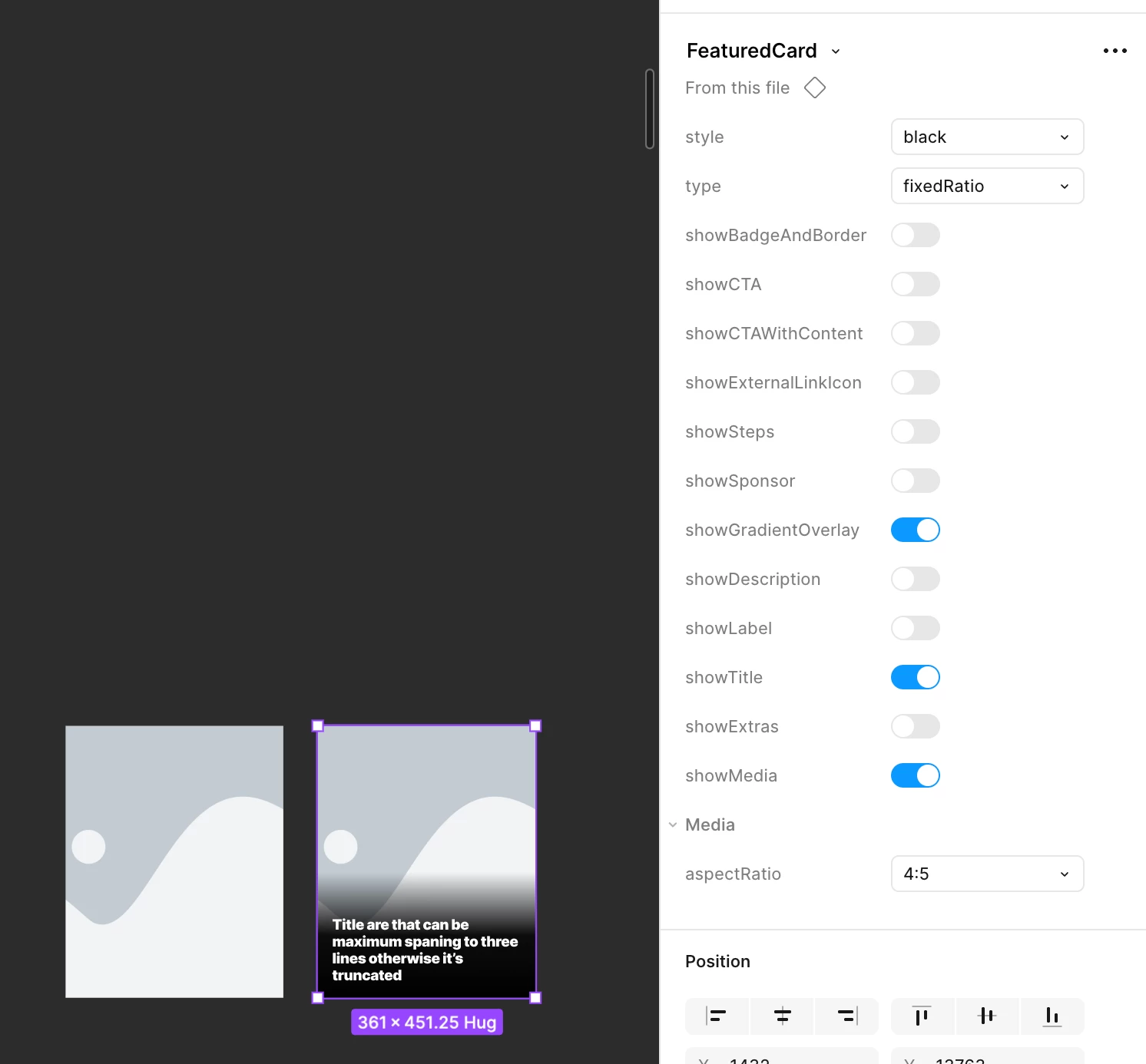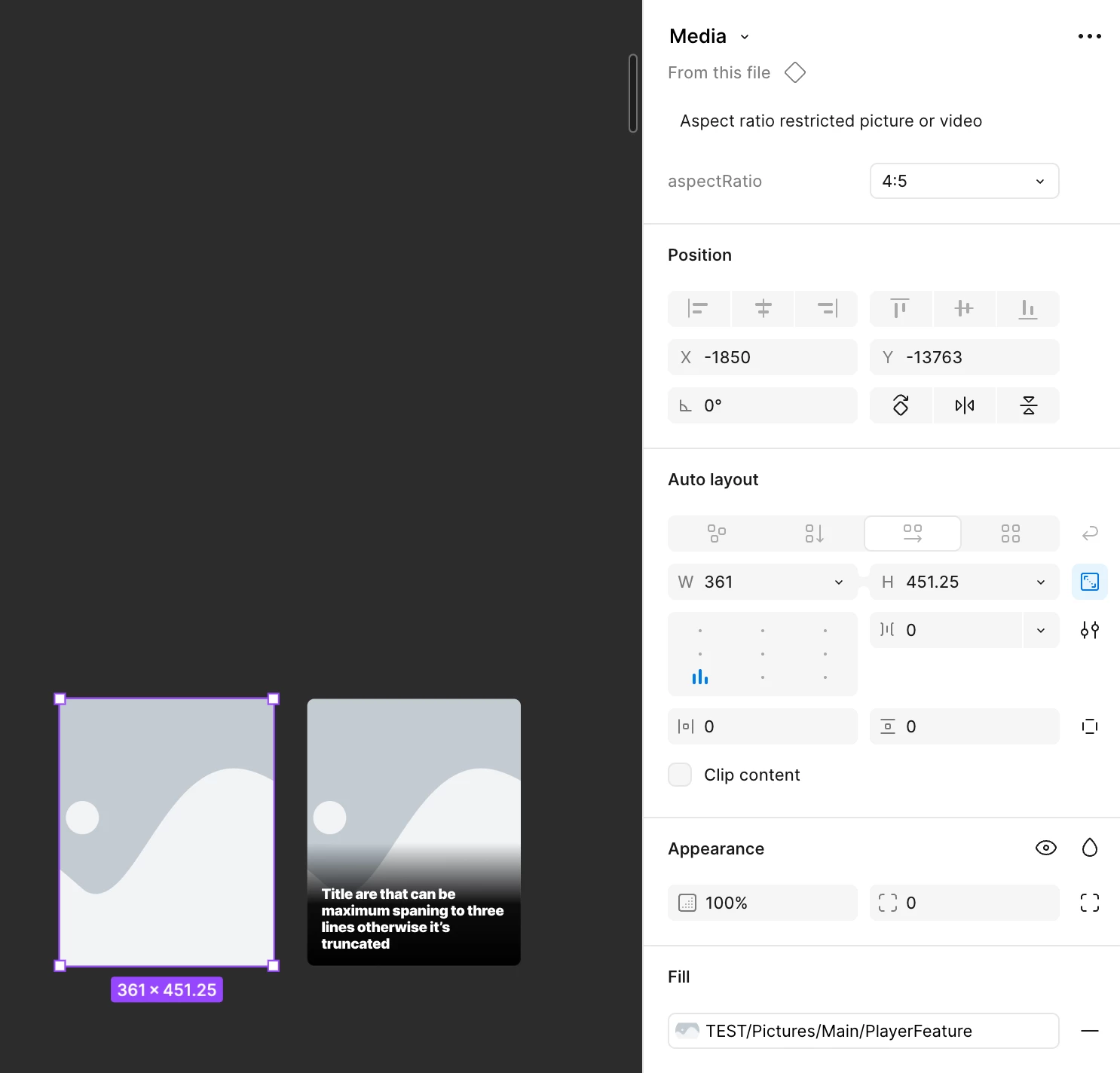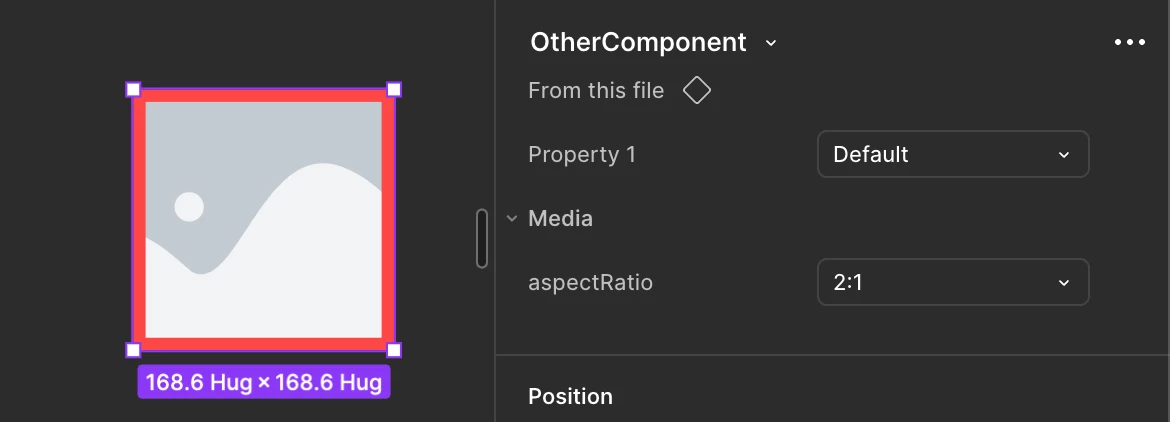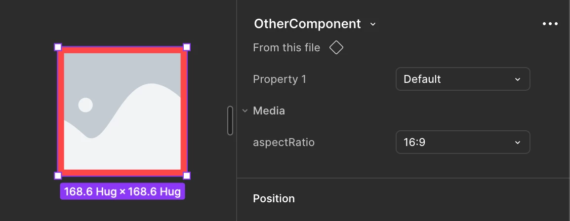 When a nested component instance switches between variants with different aspect ratios, the parent component set to Hug contents does not resize to match the child’s new dimensions. The parent keeps its previous size instead of wrapping the updated aspect ratio.