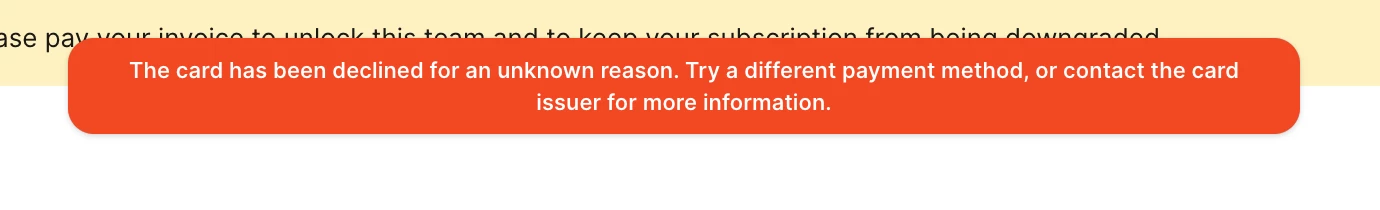 If your card details look correct, we’dd suggest trying a different card or reaching out to your bank directly for more information. If you'd like to update your payment method, this guide can walk you through it: Change payment method.