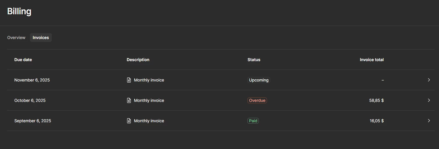Because of that, I canceled the subscription and tried to re-subscribe, but now I don’t have the option to pay monthly for the $16 plan. I can’t figure out how to do it, and I’d also like to remove the $60 payment line from my billing section since it’s incorrect and unnecessary.