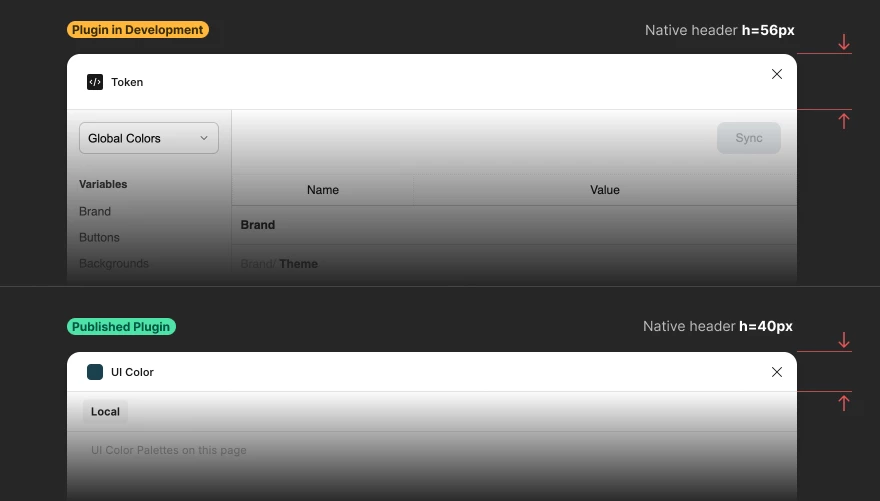 I’ve noticed that the native plugin header (the top bar that shows the plugin icon, name, and close button) has a different height when running a plugin in Development mode compared to published plugins.