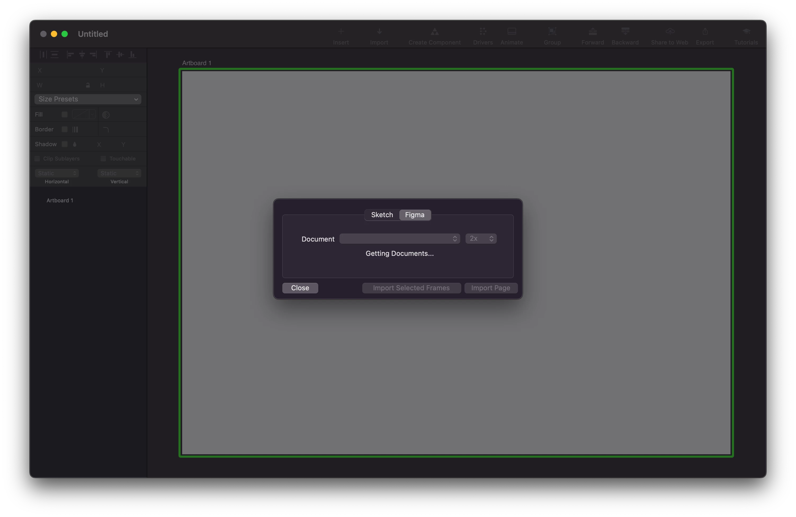 Im trying to import my designs into Principle for mac, but for some reason it wont connect to Figma. It just hangs on “Getting documents” and then it says it couldn't reach Figma.