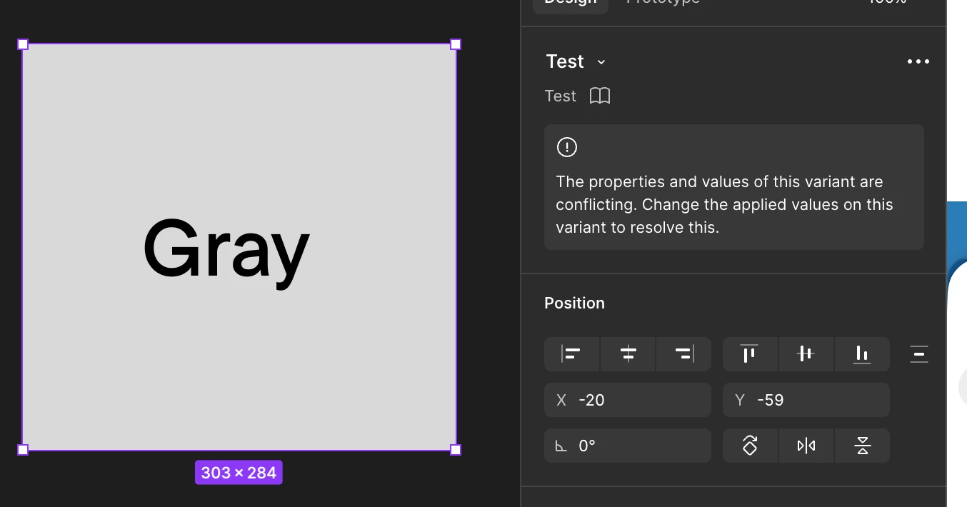 “The properties and values of this variant are conflicting. Change the applied values on this variant to resolve this.”