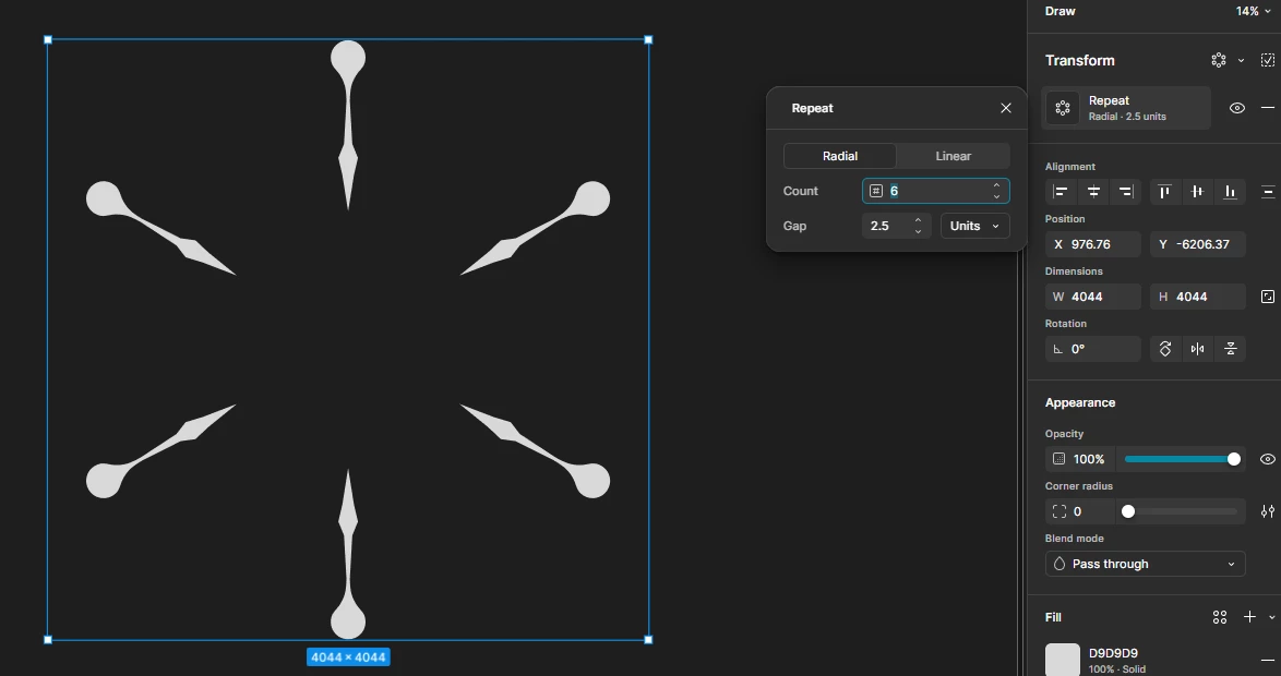 Next I’ll save the radial repeat group to SVG and use it in Figma.