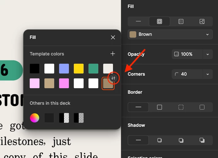 - You can also open the “Edit color” modal by clicking on the slider icon. Same thing applies here. The "Custom" tab lets you adjust the selected color and the "Libraries" tab allows you to replace it with a color from your libraries (including other libraries, if needed).