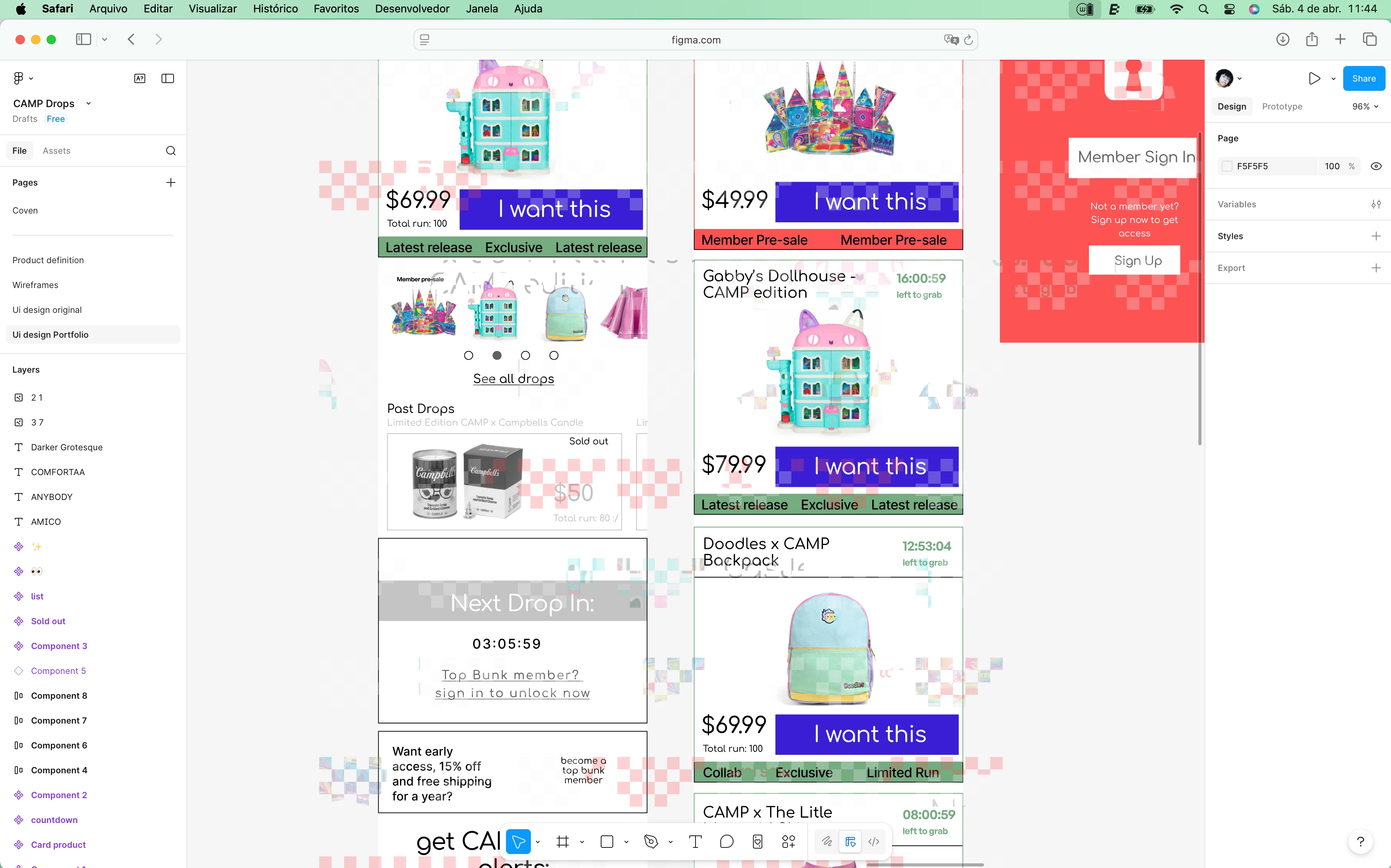 Across all Figma files, I’m seeing a pixelated/glitch-like artifact (appears as small square “noise” or serrated patterns) overlaying the interface and design elements. This distortion is not part of the design itself.