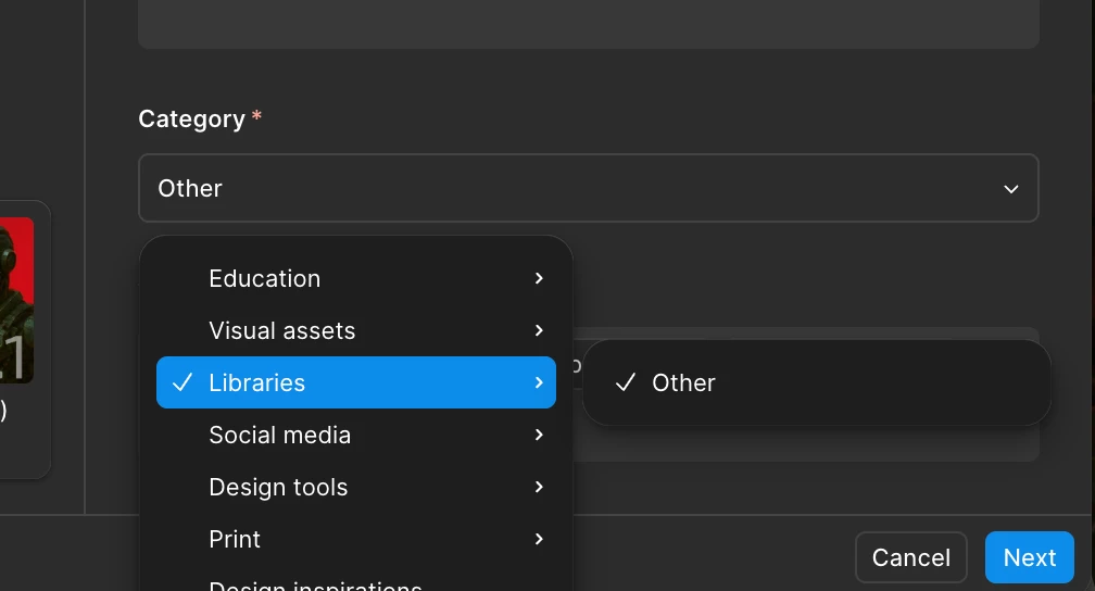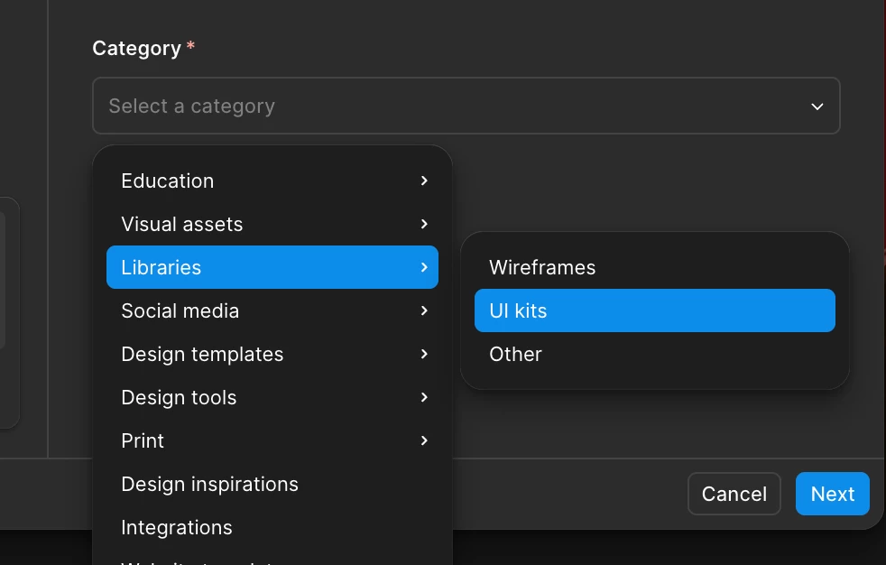 When I wanted to update the file I had previously published to the community as Library → UI Kit, the sub category (UI Kit) disappeared and only shows one option (Other) which will not display a preview or be shown in the right listing