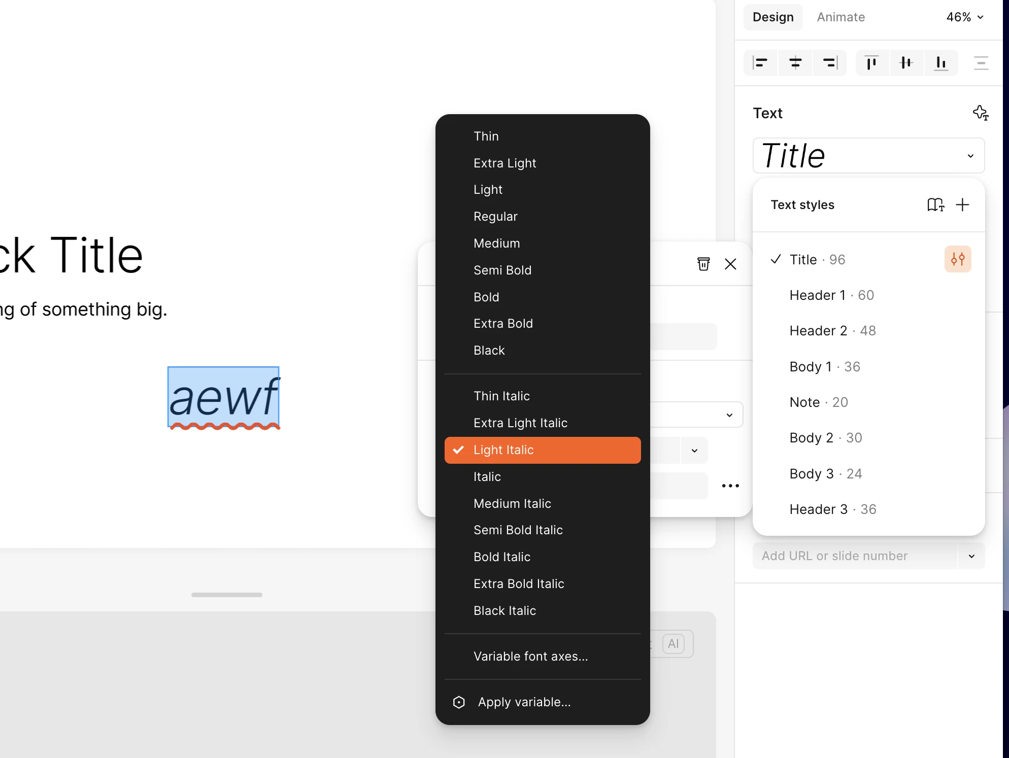 Why isn’t it possible to set specific options for italic or bold variants on Text Styles in Figma Slides?
